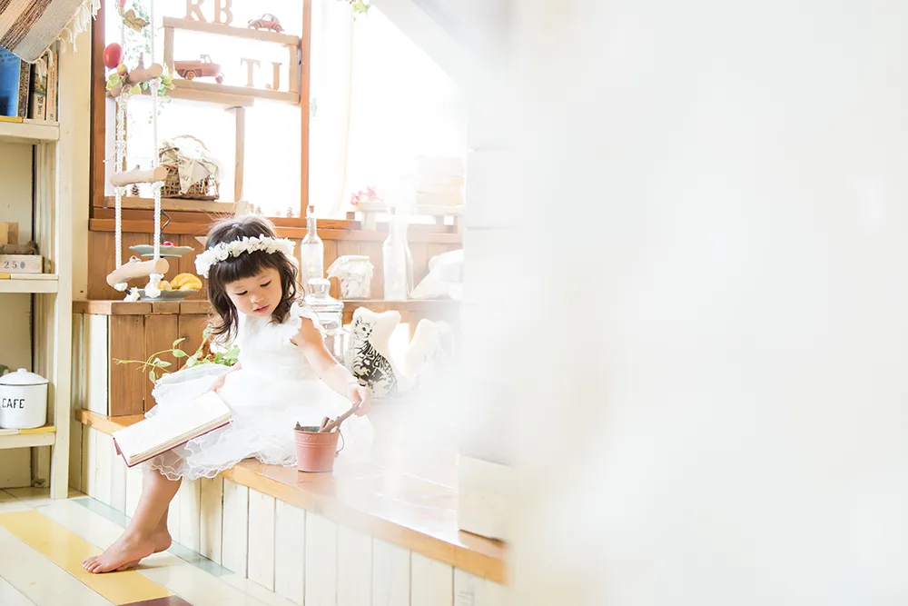 専門のヘアメイクは行っておりませんが、シーンに応じて担当スタッフがお子様の簡単なヘアアレンジをしております。